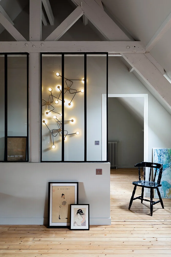 Sous la haute charpente, un grand espace familial ainsi qu’une chambre remplacent maintenant l’ancien grenier.